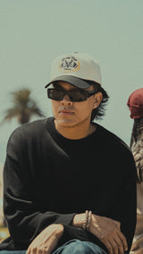 Classic heritage meets contemporary style in the Leovici Sporting Club Hat. Featuring a crisp cream crown and bold black bill, this structured cap showcases a custom embroidered crest—crossed flags framed by golden laurels, anchored by “Sporting Club” and the Leovici name. Designed for those who appreciate timeless design and elevated leisure, this hat is equal parts statement piece and staple.
