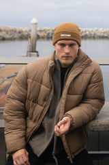 Our modern take on an American classic is sure to provide versatility to your wardrobe. Constructed with 100% Polyester, this jacket delivers premium comfort and durability. The Leovici Puffer Jacket features a full cut high collar, long sleeves, elastic cuffs, side pockets, adjustable hem with side elastic, and front zip closure hidden by a snap button flap. Sticking to our roots, we’ve carefully crafted subtle logo detailing throughout the silhouette.